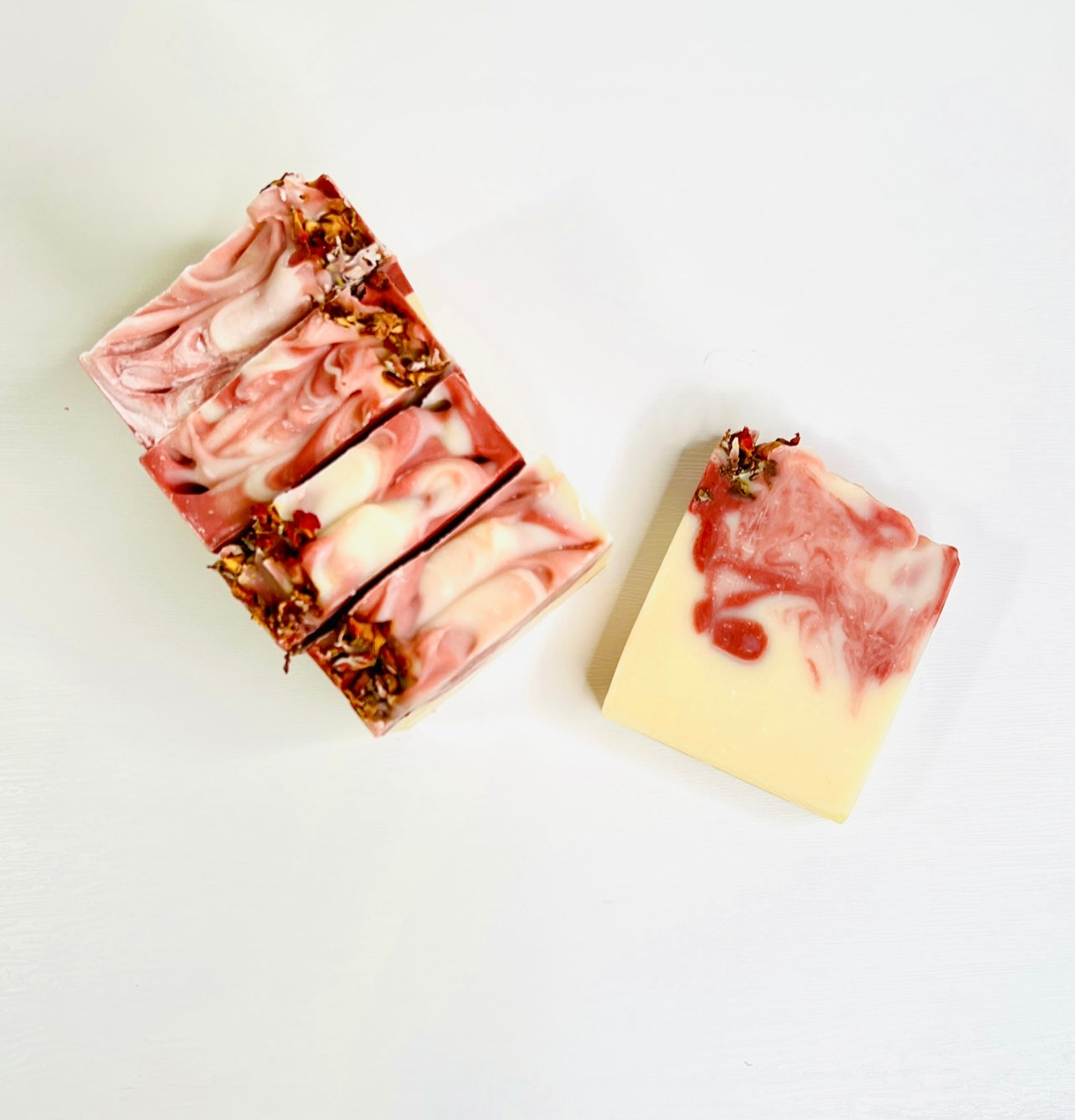 Handmade soap collection made without dyes, or artificial colorants and made with shea butter and cocoa butter for a moisturizing skin-loving feel
